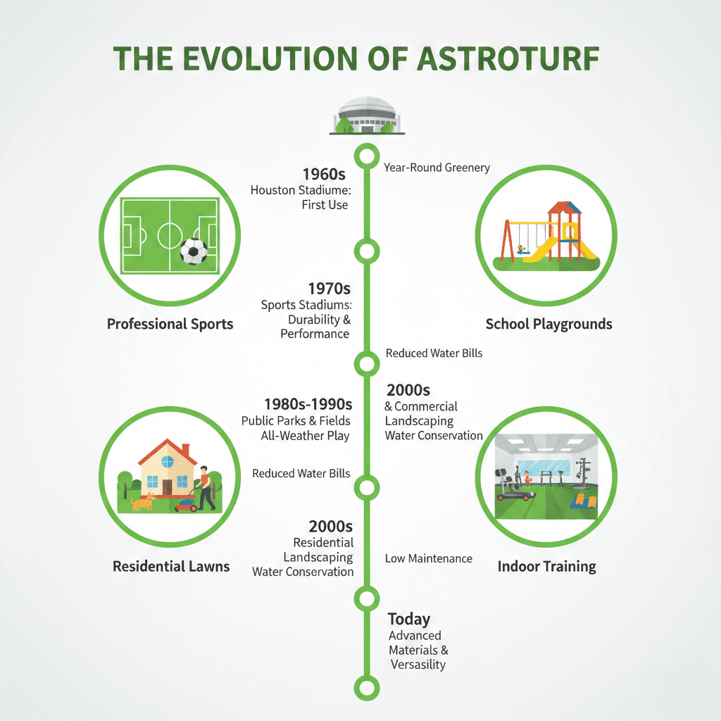 Astroturf is a brand name that has become synonymous with artificial grass — a synthetic surface made to look and feel like natural grass. It was originally developed as a durable alternative to natural grass for sports stadiums but has now become widely used in residential landscapes, commercial properties, playgrounds, and even indoor areas.